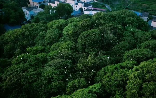 近年来,赤山镇以白鹭栖息的山体为中心,打造了鹭隐家园,白鹭在洋溢着自然气息的乐园,自在地翱翔于蓝天下,盘旋于树林中,嬉戏于池塘间,呈现一幅人与自然和谐共生的美好画面。