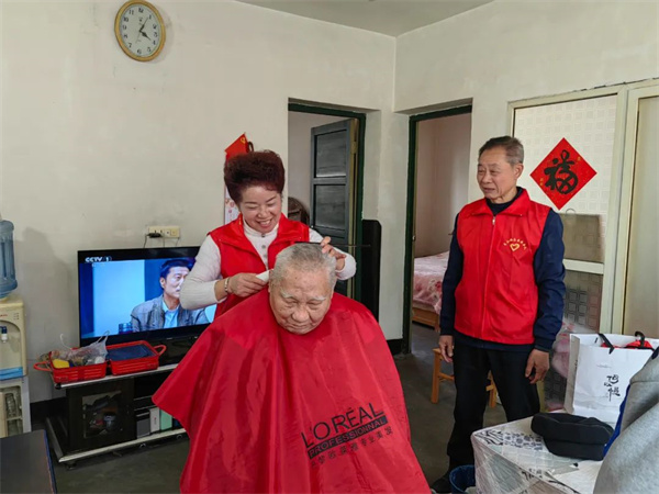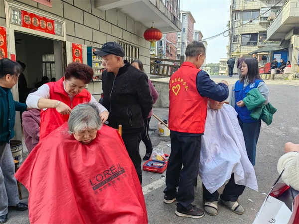 上午,身穿红色马甲的志愿者们带着理发工具来到新建社区老人们家中,一边理发,一边与老人唠家常,时刻关注老人的感受。每一个细微动作,都饱含着对老人的尊敬与关爱。在理发的过程中,志愿者们还与老人们亲切交谈,询问他们的身体状况和生活情况,用实际行动传递着社会对老年人的关爱与温暖。