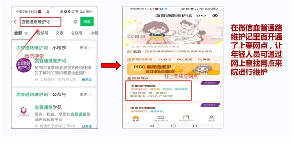 就诊流程:携带医保卡/维护本到一楼门诊大厅挂号→住院部二楼医师办公室开PICC维护诊疗单→住院部二楼护士进行维护