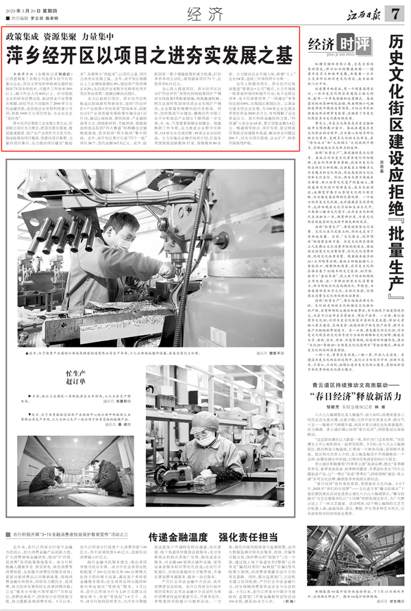 萍乡经开区聚焦工业发展主责主业,牢固树立项目为王理念,把项目落实落地、推进提速提质、投产达产达效作为主攻方向,推动政策向项目集成、资源向项目集聚、力量向项目集中,全力推动项目建设“跑起来”、发展势头“热起来”,以项目之进、项目之效夯实发展之基。去年,该开发区规模以上工业增加值增长8%,固定资产投资增长5.2%;先后获评全省数字化转型优秀开发区和全省第二批碳达峰试点园区。