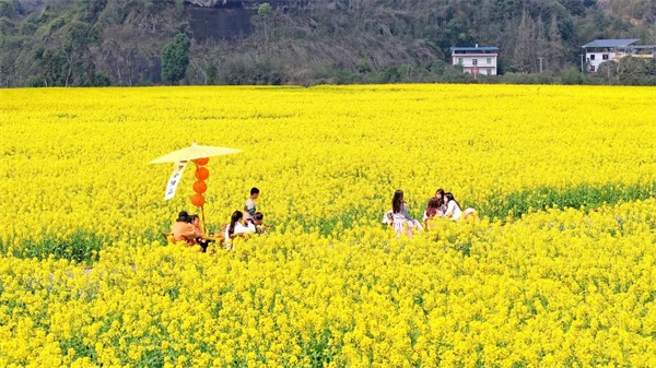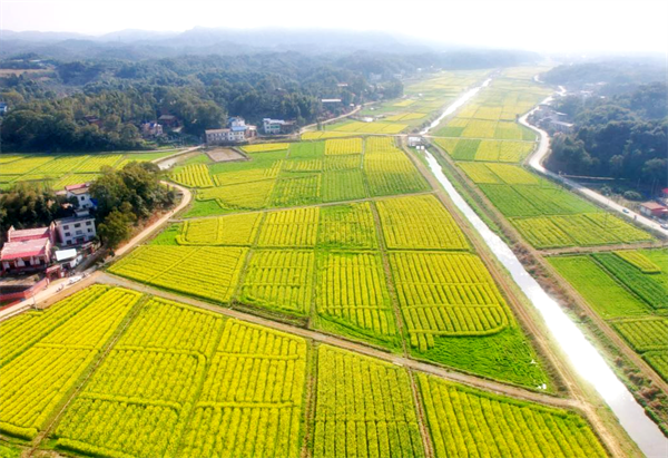 “儿童急走追黄蝶,飞入菜花无处寻。”田间的油菜花,是春天最慷慨的馈赠,也是春天的湘东最美的底色。一望无际的油菜花田,如金色的海洋,微风拂过,涌起层层花浪,那浓郁的花香飘散开来,带着泥土的质朴与春日的蓬勃朝气。