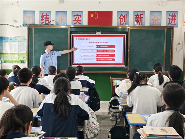 “哪些日常行为可能威胁国家安全?”在长平中学,乡派出所民警运用精心制作的PPT,并结合实际案例向师生们讲解什么是国家安全、国家安全与日常生活的关联、国家安全的法律法规以及我们能为国家安全做什么,让大家认识到国家安全与日常生活的紧密联系。“原来上网、拍照,都会威胁到国家的安全。”同学们纷纷表示要从自身做起,做国家安全的守护者。