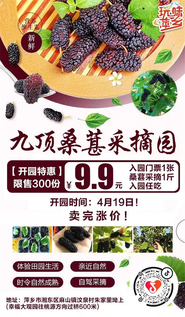 地址:麻山镇汶泉村朱家坳上萍乡九顶桑葚采摘园