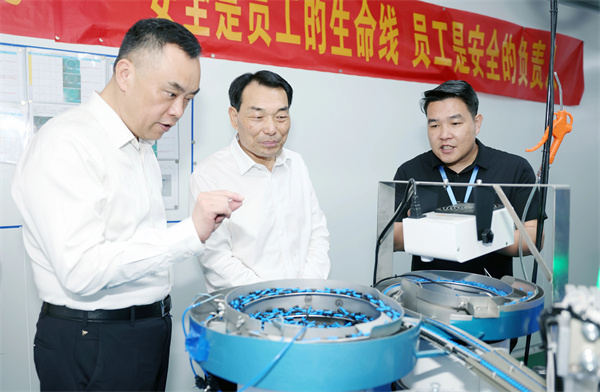 在江西兆驰瑞谷通信技术有限公司,熊运浪深入生产车间,详细了解企业技术研发、市场销售以及产业链配套情况。他鼓励企业坚持创新引领,加大智能化、数字化改造投入,加快核心技术攻关和科技成果转化,推动产品向高端化、品牌化跃升。