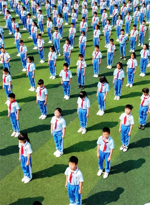 一年级萌娃们整齐站立
