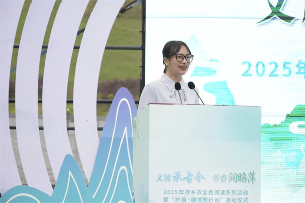 4月23日,“文脉承古今 书香润昭萍”2025年萍乡市全民阅读系列活动暨“护苗・绿书签行动”启动仪式在芦溪县举行。市委常委、宣传部部长叶舟出席活动。