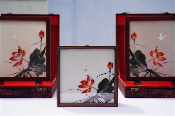 文化活动展示区堪称“人气收割机”!非遗项目、文创产品、艺术创作一一亮相,木版上的刻痕化作扇面灵动的线条,墨色在纸扇上晕染出岁月的质感,一把兼具传统雕版韵味与实用功能的纸扇成型。书法家笔锋如游龙入水,在扇面徐徐铺展,让围观的观众纷纷感叹。芦溪县农民画展更是成为了拍照打卡的热门地,色彩绚丽的农民画,展现出萍乡乡村的独特魅力。