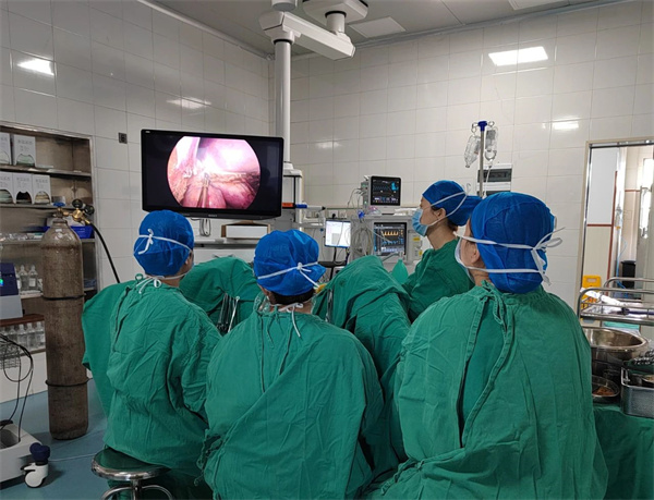 面对这一棘手难题,市二医院迅速启动MDT多学科诊疗。妇科、麻醉科、心内科、内分泌科等多学科专家齐聚一堂,展开了联合会诊。经过全面而细致的系统评估,并与患者家属讨论交流之后,李莉莎妇科专家团队决定对黄奶奶开展全麻插管下行经阴道腹腔镜下全子宫切除术+双侧附件切除术。