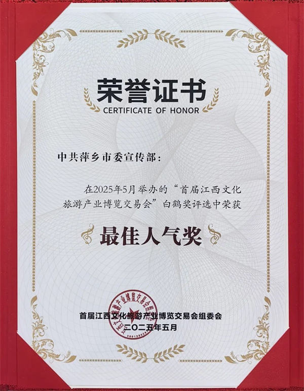 作为萍乡文旅的重要名片,萍乡武功山不断探索旅游发展新路径,此次在博览会上展示的创新旅游模式与丰富的文旅产品,为传统旅游注入新活力,成为江西旅游创新发展的典范,荣获“旅游创新奖”。