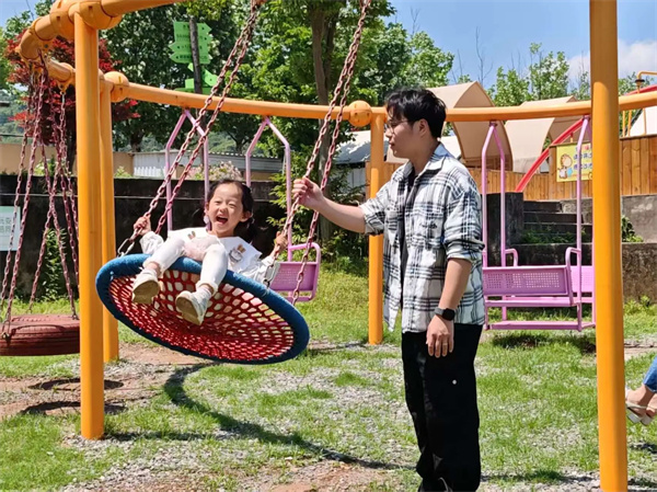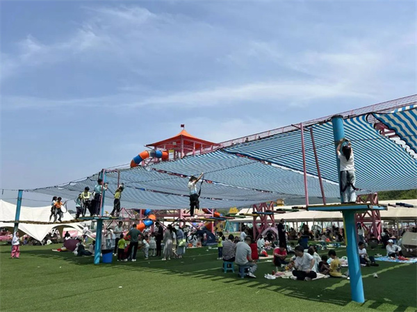 麻山镇的青山翠谷间,山猫王国运动公园以6万平方米的辽阔画布,勾勒出一座纯天然、无动力的亲子乐园。这里没有电子荧幕的喧嚣,多元的儿童创意娱乐项目,让孩子们用最本真的方式,触摸山野,“野蛮”生长,也让父母与孩子攥紧了亲子间最温暖的纽带。