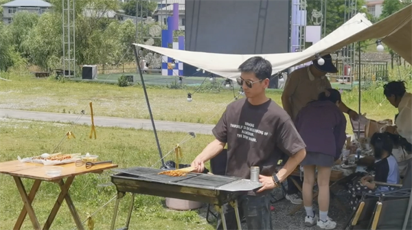 在麻山镇木客营地,一顶顶帐篷错落有致地撑起,编织成亲近自然的温柔港湾。三五好友围坐在烧烤架旁,炭火噼啪作响,香气混着欢声笑语在空气中流淌,亲友之间的嬉笑与自然的风声交织成曲。