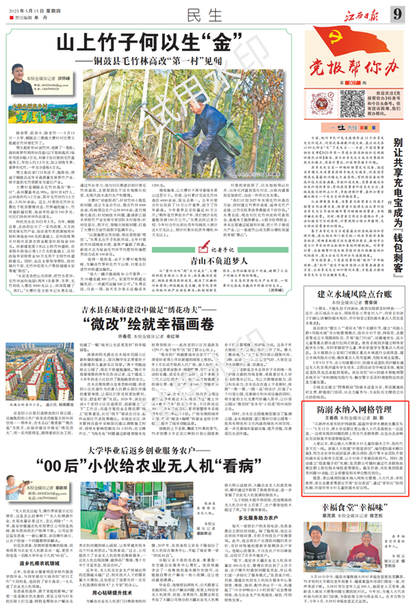 “石硖冲水库有防护网破损、温盘林家冲水塘救生圈丢失……”5月12日,萍乡市安源区青山镇人大代表高枧生一边巡查,一边将发现的问题拍照上传至代表联络群,应急办迅速响应完成修复并加装智能监控。