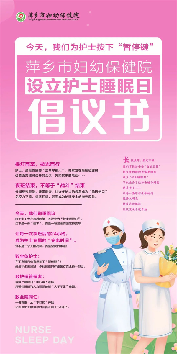 为护士按下“暂停键”——萍乡市妇幼保健院设立“护士睡眠日”倡议书