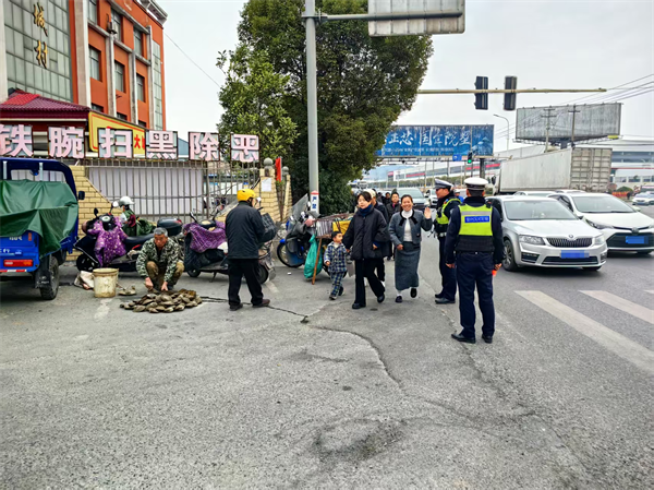 上午8时,集市迎来人流高峰,人来人往,热闹非凡。集市内,身穿红马甲的志愿者和城管队员一起共同维持秩序。志愿者们耐心地为不熟悉新集市布局的老人指路,城管队员则手持扩音器,提醒商贩规范摆放货物。集市外,青山交警支队的民警们正在执勤。“赶集日车流量、人流量大,我们增加了警力部署,全力保障道路交通安全,让村民们赶集放心又舒心。”一位交警说道。