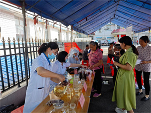 现场还为候诊居民搭建阴凉候诊区,并且准备了祛湿茶、健脾茶、淡斑茶等特色养生茶饮,全心全意的给居民提供贴心服务。居民杨奶奶表示:这一次家门口的义诊特别棒!我是双手的麻木所以来看看,刚刚体验针灸后立马就有了缓解,养生茶也很好喝,希望还能多举办这样的活动。
