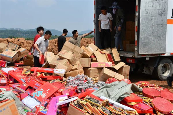 上栗县金山镇开展非法烟花爆竹集中销毁行动 筑牢安全防线