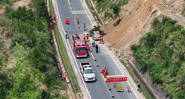 本次演练模拟因山体滑塌导致公路阻断、车辆被掩埋等突发险情。随着预警信号响起,交警部门第一时间实施交通管制,公路应急队伍同步布设警示标识、封闭作业区域,消防救援人员携带破拆设备精准定位被困人员,医护人员紧随其后展开紧急救治……各参演部门在监测预警、应急响应、现场救援、交通疏导、医疗救护、灾后抢通等环节中高效联动,在紧张有序的氛围中完成全流程实战演练。