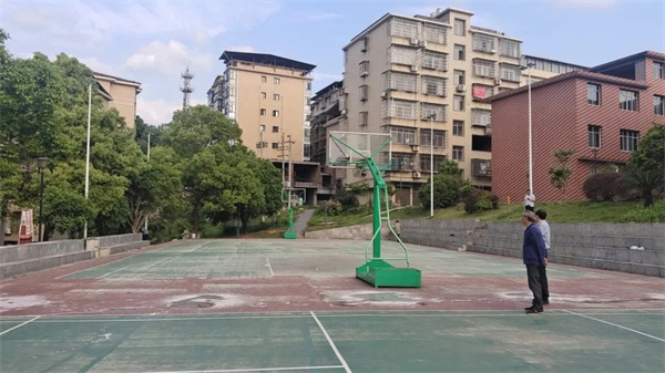 泉塘小区篮球场因建在斜坡旁,居民运动时篮球常滚落坡下,既影响活动又存在安全风险。光丰街道横板村联合村务监督委员会实地勘查后,迅速联系施工方增设围栏。