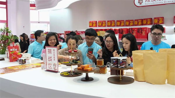 近年来,安源区充分挖掘红色历史和辣文化等特色旅游资源,巧妙结合现代设计,推出了一系列文创产品,让“辣红安源”城市文化IP鲜活起来。步入展销中心,印有卡通形象“啦啦”“嘟嘟”的帆布包、方言辣味徽章、辣椒造型玩偶等创意产品,生动演绎着红色热土的现代表达。主播们跟随讲解员深入文创区、特色产品展示区、银龄巧手社等特色空间,体验“啦啦嘟嘟大闯关”集章活动,从微辣到变态辣的阶梯式挑战,配合吃辣擂台等十余种互动游戏,让线上线下观众沉浸式感受辣文化的多维度魅力。“辣椒冰淇淋堪称味觉革命!淡粉色外表下藏着微甜与火辣的交响。”主播们品尝创新研发的辣椒冰淇淋时,通过直播镜头实时分享这种“冰火交融”的独特体验。