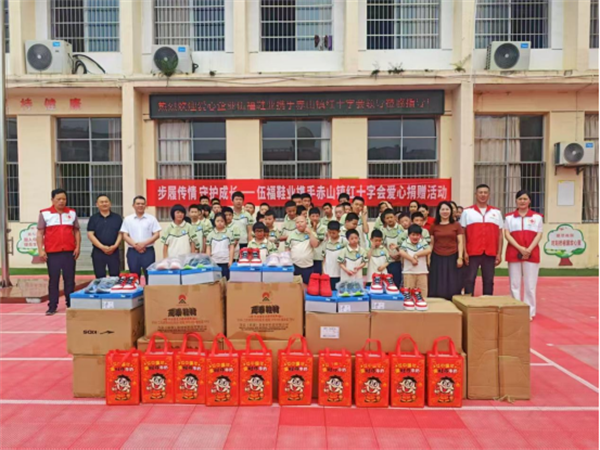 步履传情 守护成长--伍福鞋业携手上栗县赤山镇红十字会开展爱心助学捐赠活动