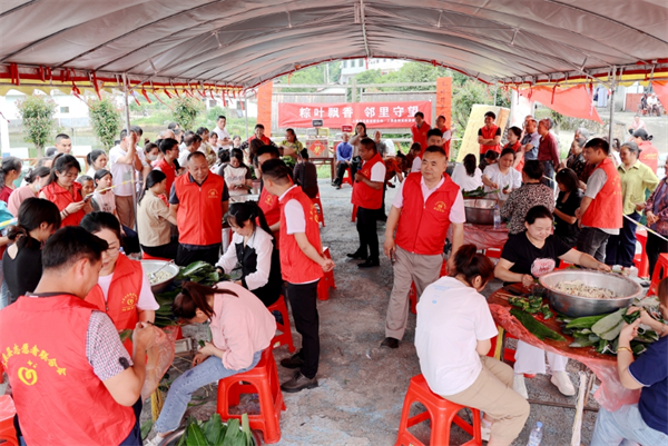 比赛结束后,大家欢声笑语,一边品尝自己亲手包的粽子,一边拉家常、话变化,在粽叶清香中感受浓浓的邻里温情。