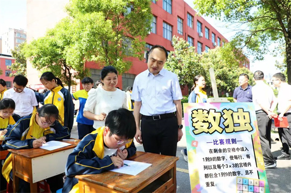 萍钢中学的校园里,洋溢着青春的活力与求知的热情,一场以“德法双驱 青春解码”为主题的道德与法治益智游戏活动正火热进行。同学们兴致勃勃地参与着数独推理、九连环挑战等项目,在寓教于乐中启迪思维、感悟法治精神。活动现场还展出了学生们的绘画、书法等作品,展现了新时代青少年积极向上的精神风貌和艺术才华。何超饶有兴致地观看同学们的活动,与大家交流,勉励他们珍惜时光、勤奋学习、锤炼品德修为,做德智体美劳全面发展的社会主义建设者和接班人。他叮嘱学校负责人,要始终坚持立德树人的根本任务,创新教育方式方法,将思想道德教育与法治教育有机融入日常教学和校园活动中,为青少年健康成长营造良好环境,扣好人生第一粒扣子。