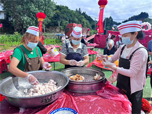 活动中,村民们还组织了精彩的文艺演出,威风锣鼓、歌舞等节目轮番上演。村民们围坐在临时搭建的舞台前,跟着欢快的节奏鼓掌叫好。最令人期待的豆腐宴紧随其后。村里的“烹饪能手”大展厨艺,用豆腐、豆皮等食材烹制出一道道色香味俱全的菜肴。村民们围坐在一起共享美食、交流烹饪心得,浓浓的乡情在美食中悄然传递。