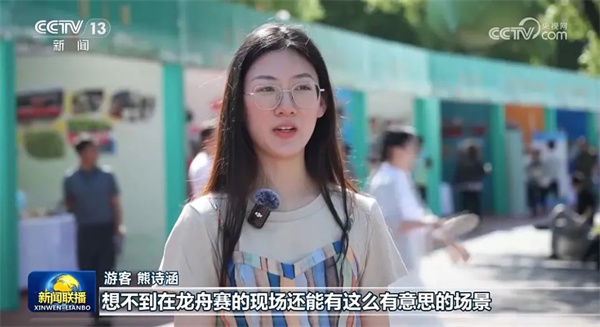 游客熊诗涵:想不到在龙舟赛的现场还能有这么有意思的场景,我特地买了许多文创产品带回去,希望能把这里这份美好的回忆留存下来。