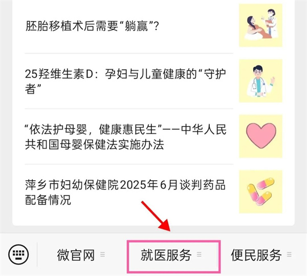 1.网络挂号:微信搜索“萍乡市妇幼保健院”公众号→点击就医服务中在线挂号→点击当天挂号或者预约挂号→搜索孕期保健科“早孕门诊”→选择就诊挂号即可。
