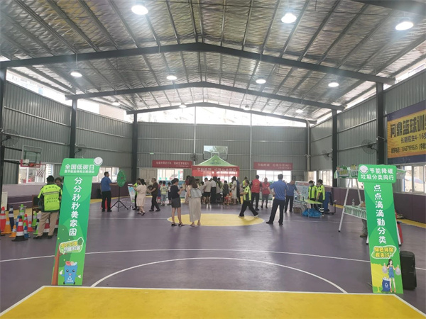 6月27日,上栗县滨河社区篮球场化身为绿色低碳的实践课堂,由上栗县城管局联合上栗县机关事务管理中心、上栗生态环境局、上栗镇滨河社区共同举办的“节能降碳,垃圾分类同行”主题活动火热开展。一群来自栗江小学的红领巾志愿者们为这场全民行动注入蓬勃朝气。
