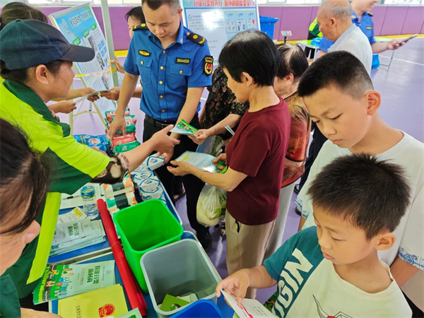 除红领巾们活跃的闯关游戏外,“分类大转盘”、“亲子套圈挑战”吸引众多家庭参与,寓教于乐强化分类习惯;“以废换绿”兑换区前排起长队,居民李大姐用积攒的报纸换到肥皂后连连称赞:“闲置物品变废为宝,环保又实惠!”