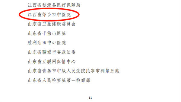 萍乡市中医院荣获全国平安医院建设表现突出集体称号