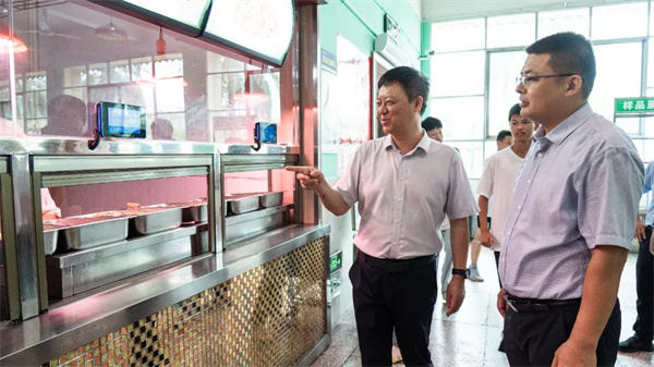 在萍乡市玖杨洋农业发展有限公司、芦溪中学,曾衍敏实地察看食堂打菜窗口以及后厨备餐区、清洗区等地,深入了解饭菜种类价格、食材存储加工、食品留样检验等情况,并召开座谈会。