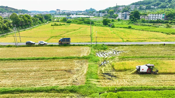 稻香四溢,满目金黄。连日来,青山镇早稻陆续成熟,全面进入收割期。大片稻田犹如金色的地毯平铺在大地之上,微风拂过,金色稻浪层层翻涌。