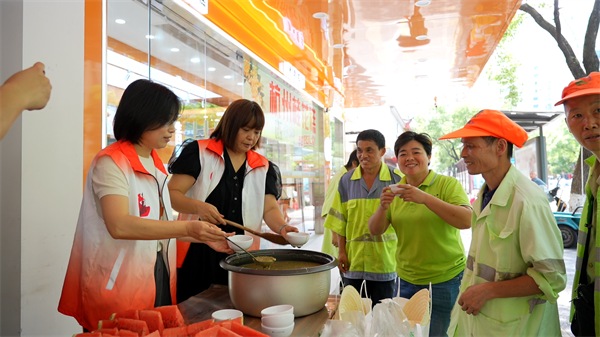 此次活动共服务近50名外卖、快递小哥及环卫工人。一碗碗清凉的饮品、一句句贴心的问候,不仅驱散了夏日的燥热,更让大家感受到了温暖。