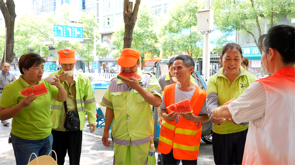 “这些户外工作者都是城市的美容师、摆渡人,他们顶烈日冒酷暑,为城市的整洁和居民的生活便利默默奉献。”藕塘边社区党委书记、主任许亮在活动中说道。她表示,区委社会工作部特意筹备了防晒物资和降温物品,就是想通过这样的方式表达一份敬意与感谢。现场,社区志愿者们还不停地给大家添续绿豆稀,忙得满头大汗却笑意盈盈。“后续社区会继续整合资源,不仅要送清凉,还会开展技能培训、健康义诊等活动,让他们在社区找到家的感觉,全力打造小哥友好型社区。”