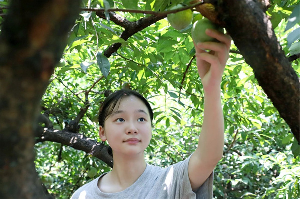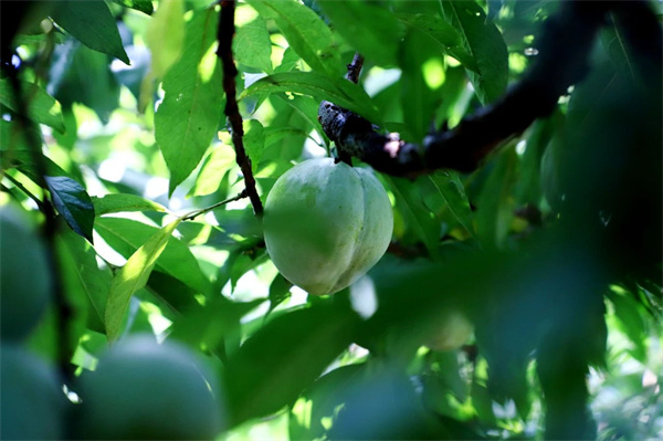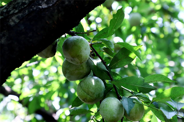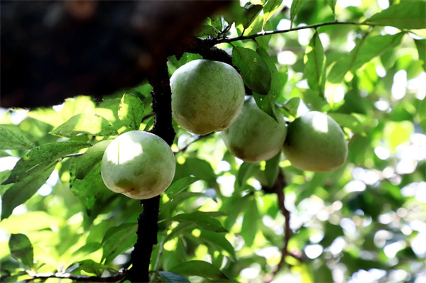 成熟的李子色泽鲜绿,果香四溢,在阳光的映照下显得格外诱人。其脆甜脱骨的口感、厚实紧致的果肉,让人摘下一颗又一颗,大口咬得嘎嘣脆,好吃到根本停不下来。不少游客趁着休闲时光到园子里感受丰收的喜悦和采摘的乐趣。