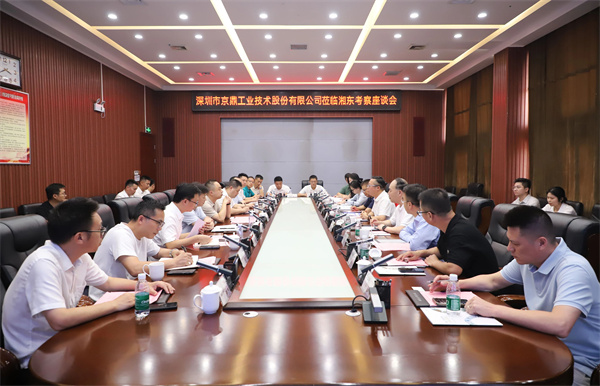 7月19日,深圳市京鼎工业技术股份有限公司董事长黄志强一行在湘东区开展投资考察活动。市国控集团党委书记、董事长贺正华,市国控集团党委委员、财务总监彭芳华,市国控集团产投公司董事长周舟,区领导何超、漆国辉、黄新亮出席座谈会。