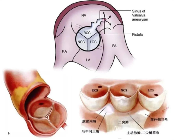 主动脉窦瘤(Sinus of Valsalva Aneurysm,简称 SOVA)是一种相对少见但极其危险的先天性心血管畸形。它发生在主动脉根部、紧贴心脏瓣膜(主动脉瓣)的三个“窦”状结构(冠状动脉从此发出)。简单来说,就是主动脉壁在心脏输出血液冲击最剧烈的根部位置,形成了一个异常薄弱、向外膨出的“瘤样”结构。