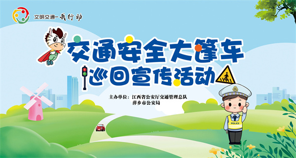 我们的大篷车穿梭在安源区、湘东区、莲花县、芦溪县、上栗县等地,从荷塘乡文塘村到金桥焊材厂,开进乡村、社区、文化广场,把交通安全知识送到大家身边~