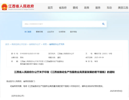 江西省人民政府办公厅关于印发《江西省推动生产性服务业高质量发展的若干措施》的通知