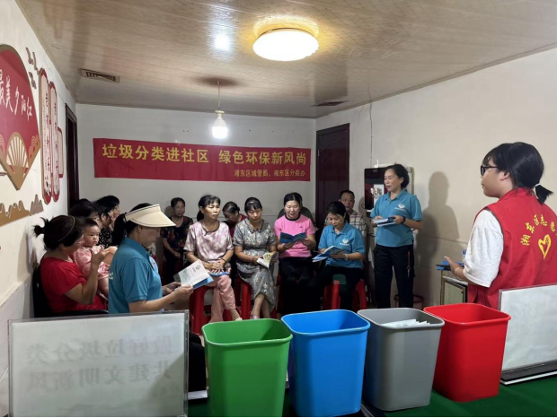 为全面提升社区垃圾分类工作实效,夯实基层工作人员的理论基础与操作能力,9月12日上午,湘东区城管局联合乡镇党员志愿者以及牵手爱心志愿者协会的志愿者们走进郭公塘社区,为社区工作人员、垃圾分类督导员、网格员、社区居民带来了一场针对性极强的垃圾分类专项培训。本次培训旨在通过系统性的讲解和面对面的答疑,解决一线工作者在实际工作中遇到的困惑与难题,统一分类标准,提升工作效率,共同推动社区垃圾分类工作迈向新台阶。
