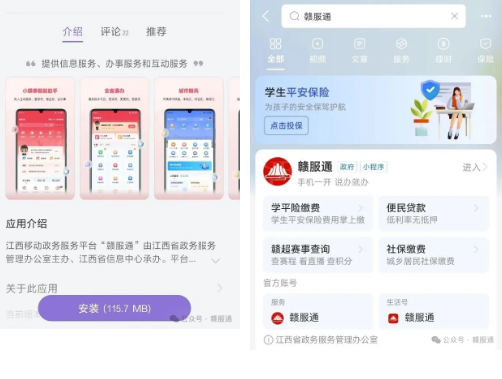 1.在应用市场下载“赣服通”APP或在支付宝搜索“赣服通”小程序进入平台。