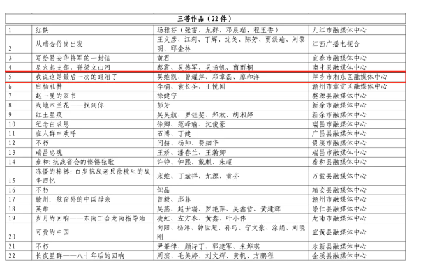 此次活动中,由湘东区融媒体中心报送的作品《我说这是最后一次的眼泪了》获评广播电视组(含新媒体)三等奖。
