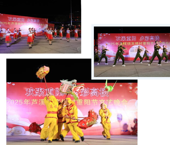 在芦溪镇高楼村,一场“欢聚高楼 多彩高楼”文艺晚会为村民奉献了一场视听盛宴。晚会在大型龙灯表演中拉开帷幕,金龙随着鼓点翻腾跳跃,气势恢宏;散龙灵活跳跃,扣人心弦,迅速点燃了现场氛围;威风锣鼓敲响奋进节拍,铿锵有力的鼓点传递着丰收的喜悦与对生活的热忱;集体舞《歌唱祖国》用整齐的舞步、嘹亮的歌声抒发爱国情怀,舞蹈《丰收喜洋洋》《喜气洋洋》以活泼欢快的节奏展现乡村富足景象,健身操《打靶归来》则将军旅风采与健身元素相结合,表演者精神抖擞、活力满满;登场的书法、唢呐表演别具韵味,高亢悠扬的唢呐声萦绕耳畔,书法家在舞台中央挥毫泼墨,“福满高楼”四个大字一气呵成,笔墨飘香间为老年朋友送上最质朴真挚的节日祝福,将晚会气氛推向高潮。