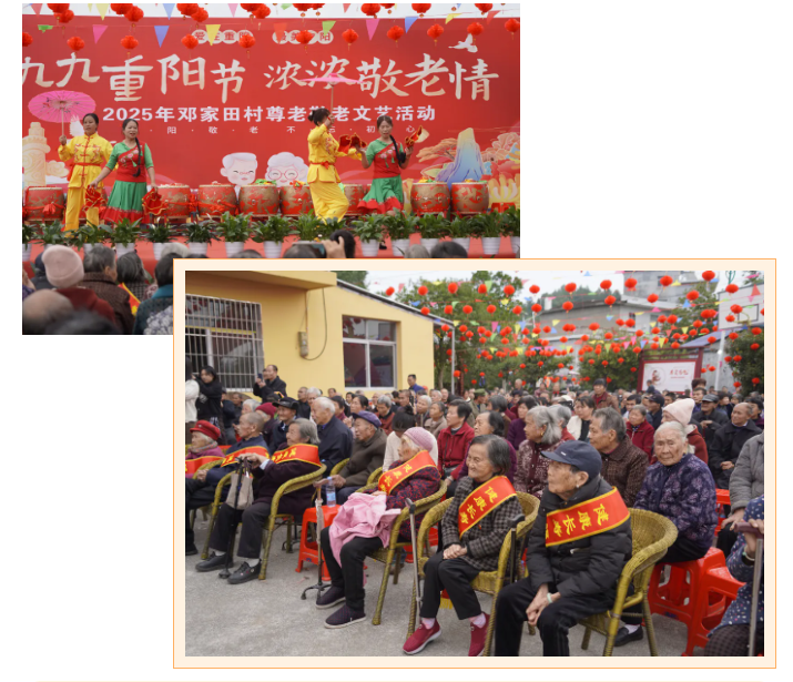 在银河镇邓家田村文化广场,一场集文艺表演与健康体检于一体的“九九重阳·孝老爱亲”主题活动温情启幕,全村六百多位老人在欢声笑语中享服务、度佳节,感受浓浓的关怀与暖意。活动现场被装点得格外温馨,红色的灯笼、“敬老爱老”的横幅随风飘扬。镇卫生院的医护人员携带血压计、血糖仪等设备,为老人们提供免费体检服务。医护人员耐心为每位老人测量血压、血糖,询问既往病史,细致讲解慢性病防治知识,并为他们建立健康档案。“不用跑远路,在家门口就能做检查,医生还嘱咐我少吃盐、多运动,太贴心了!”刚测完血压的68岁老人邓春香,拿着写满注意事项的健康手册,笑得合不拢嘴。村民自编自演的节目接连登台,点燃了现场气氛:村广场舞队舞步轻快,红色裙摆随节奏飞扬;字正腔圆的黄梅戏赢得满堂彩,更有村民自发献上的魔术、快板等节目,让老人们看得津津有味,不时拍手叫好,广场上掌声、笑声此起彼伏。活动不仅丰富了老人们的精神文化生活,更让“孝老爱亲”的传统美德在村里落地生根,为乡村振兴注入了温暖的人文力量。