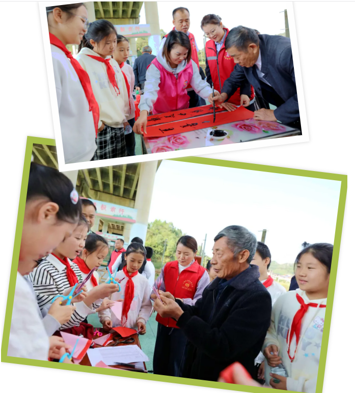 故事的余温未散,活动现场随即变身为传统文化课堂。笔墨纸砚前,黄贤辉老人挥毫写下“少年强则国强”等殷殷寄语;剪刀翻飞间,叶贤良老人巧手剪出寓意吉祥的“六喜临门”窗花。孩子们目不转睛,在鼓励下好奇地提笔、运剪。一老一少,手把手之间,完成的是技艺的启蒙,更是情感的传递与文化的接力。
